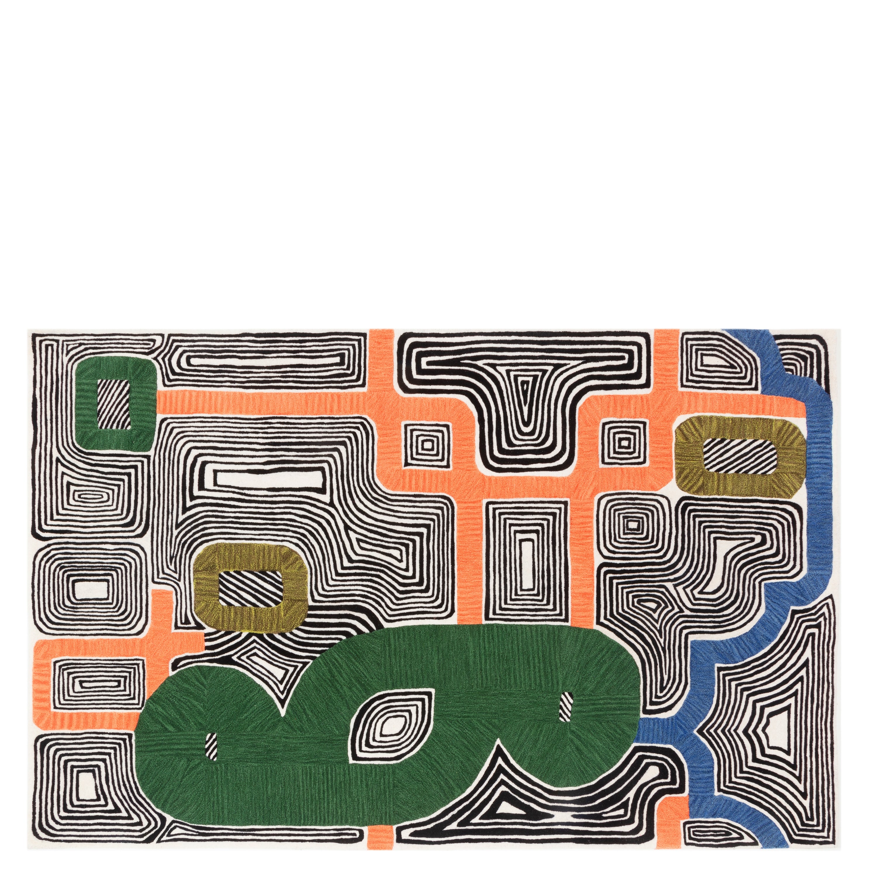 A large scale Christian Lacroix logo takes center stage on this fully embroidered decorative pillow - reversing to the same logo, digitally printed onto a contemporary cotton canvas.