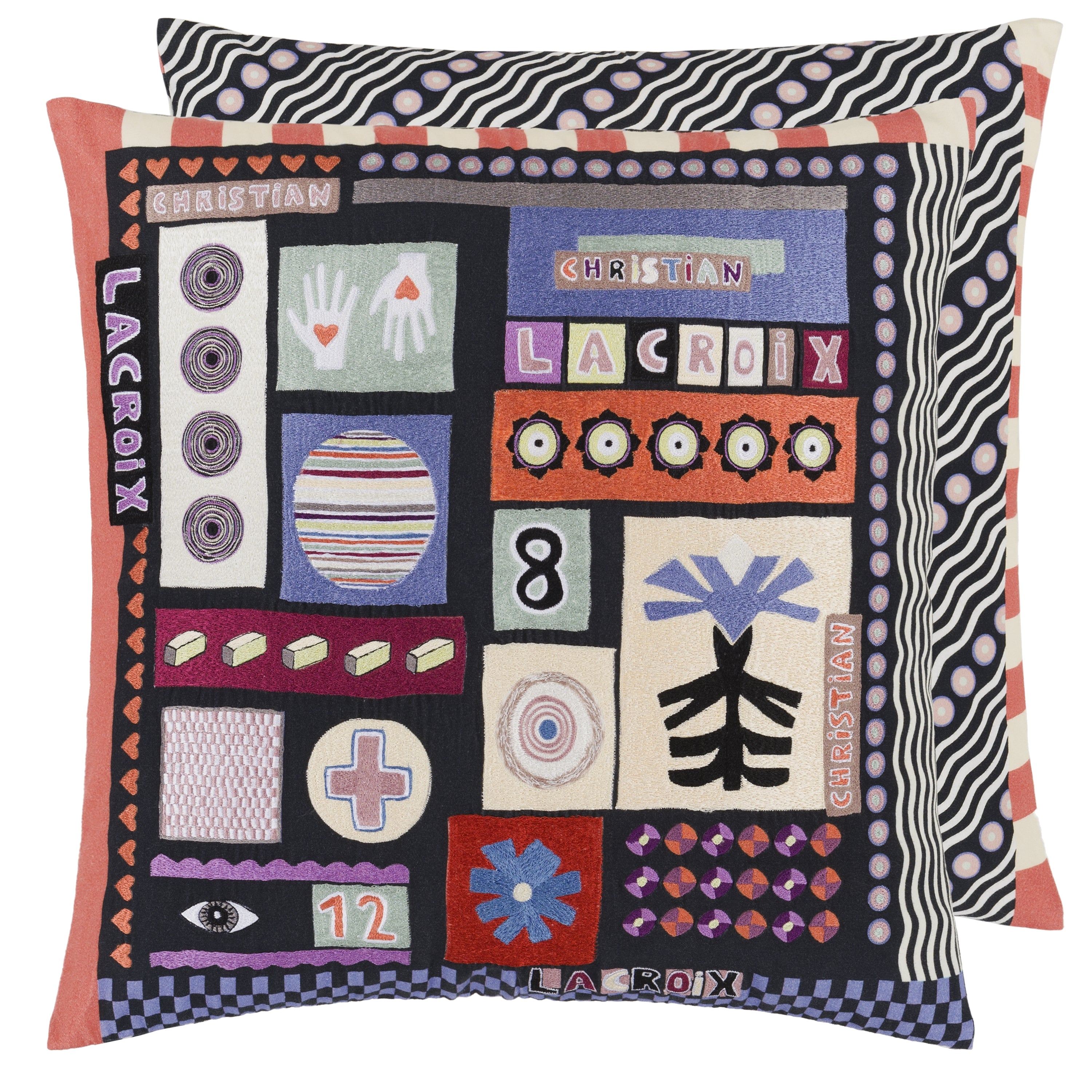 A myriad of motifs and patterns are patchworked together to create this decorative pillow by Christian Lacroix Maison. This luxurious decorative pillow is digitally printed onto cotton sateen.