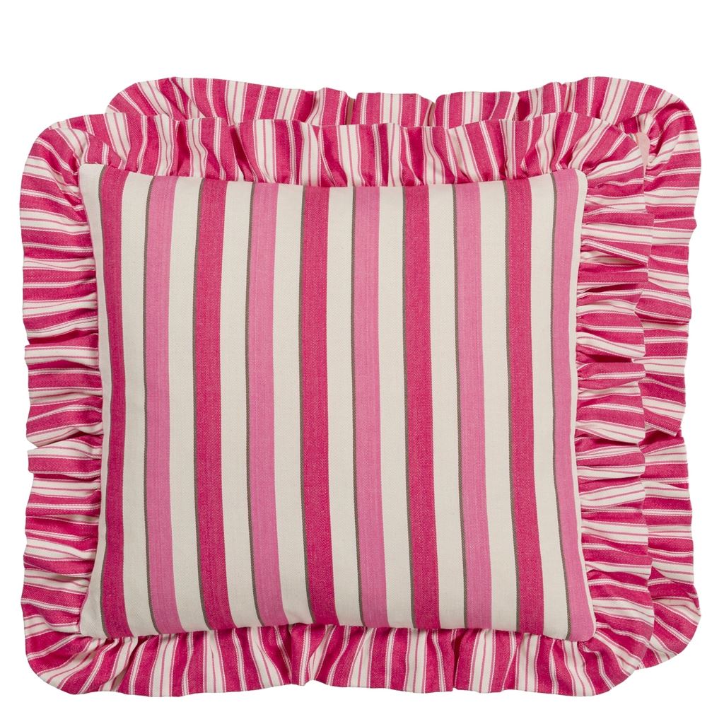 This stunning decorative pillow features three bands of a small scale graphic pattern in fuchsia pink and neutral tones, artfully fully embroidered onto a cotton canvas ground. Paired with Tortona emerald, this luxurious embroidered decorative pillow will add a decorative finish to your interior scheme.