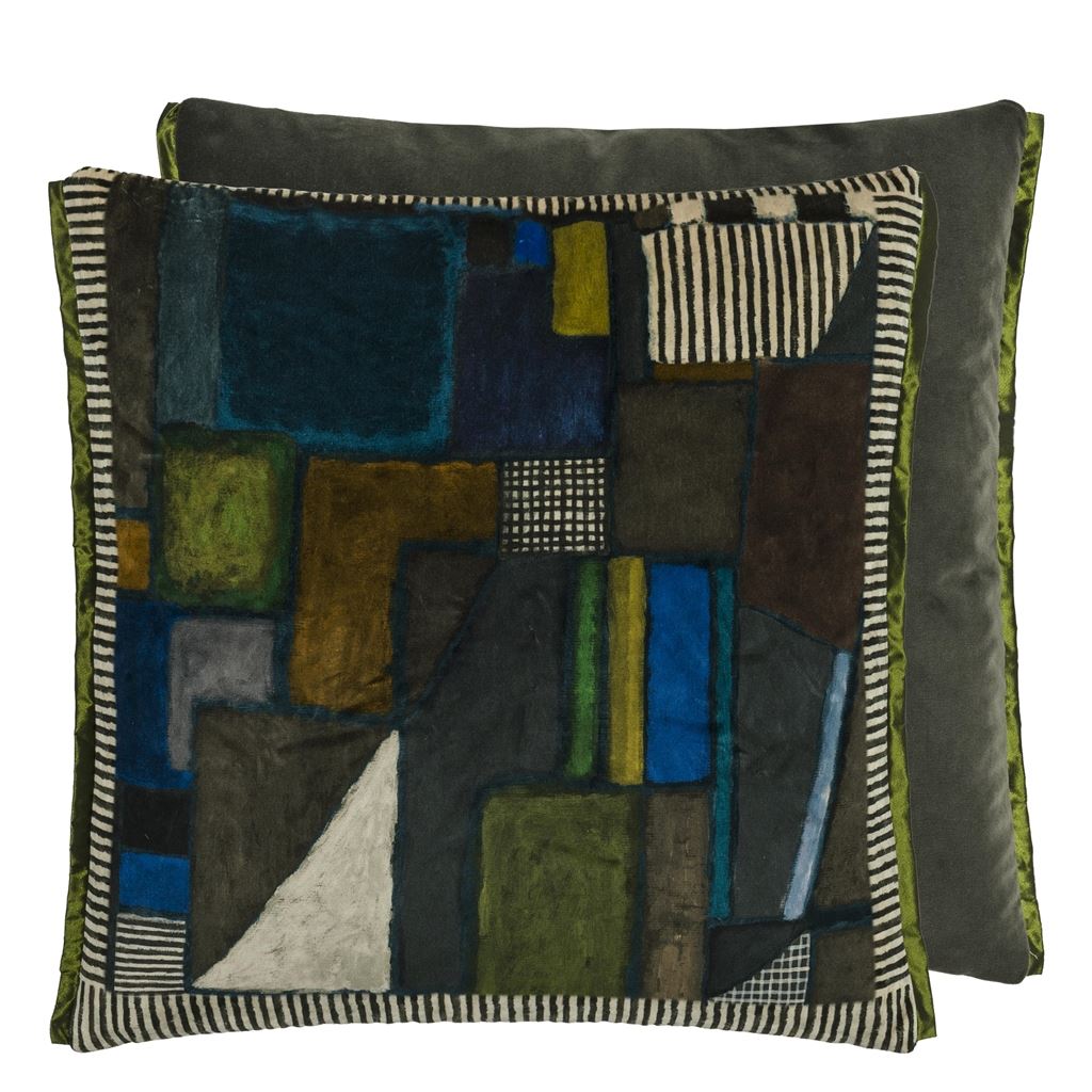 This large square velvet floral cushion will bring a luxurious touch to your interior space. Finely painted flowers are digitally printed onto luxurious velvet - this stylish interior decorative pillow in is trimmed with Chinon silk in grass green on two sides.