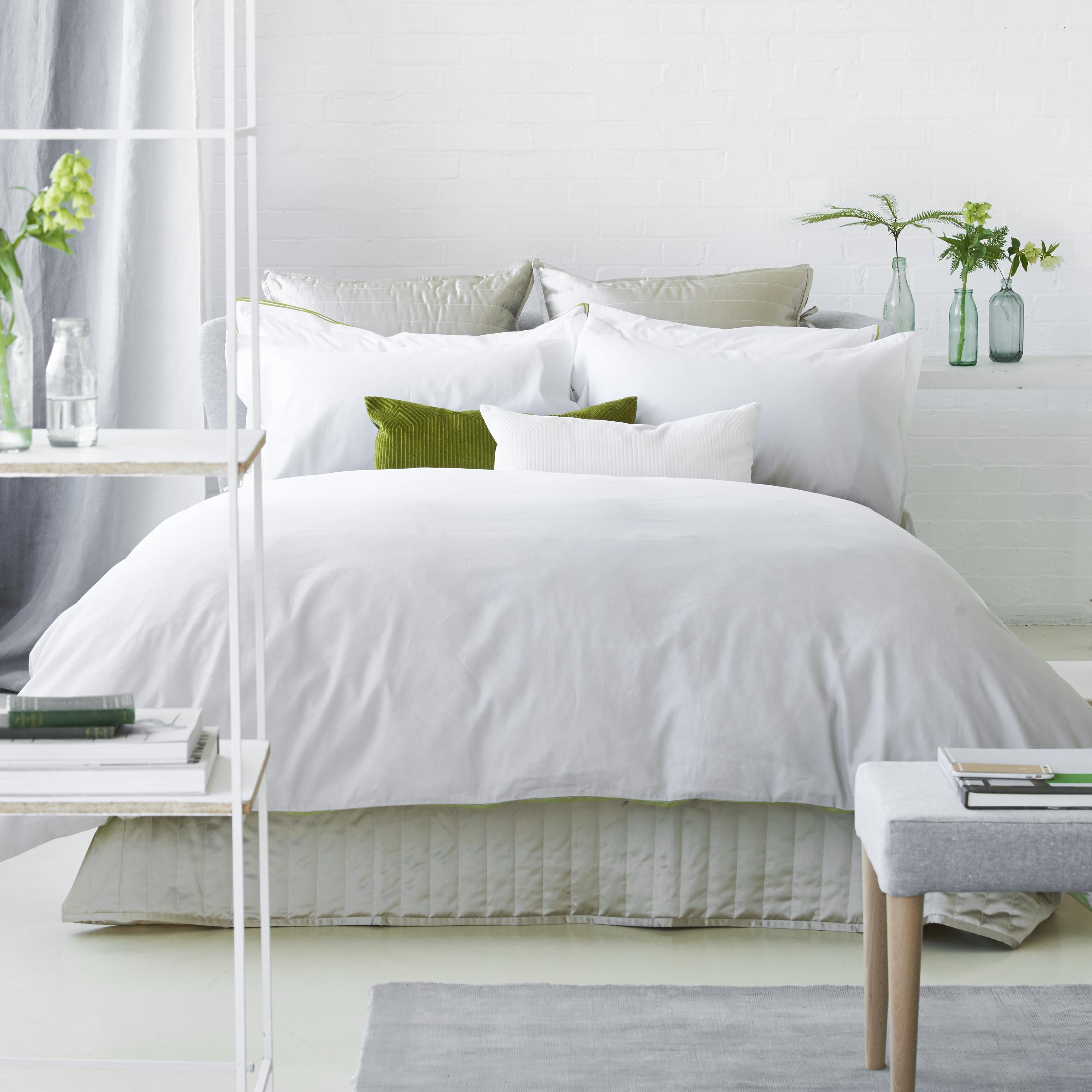 Luxuriously soft and lightweight 100% silk quilts and quilted shams in a fresh chalk white with a reverse of graphite grey. Hand-quilted and finished with a contrast cross stitch detail makes for a sophisticated complement to any bedroom.