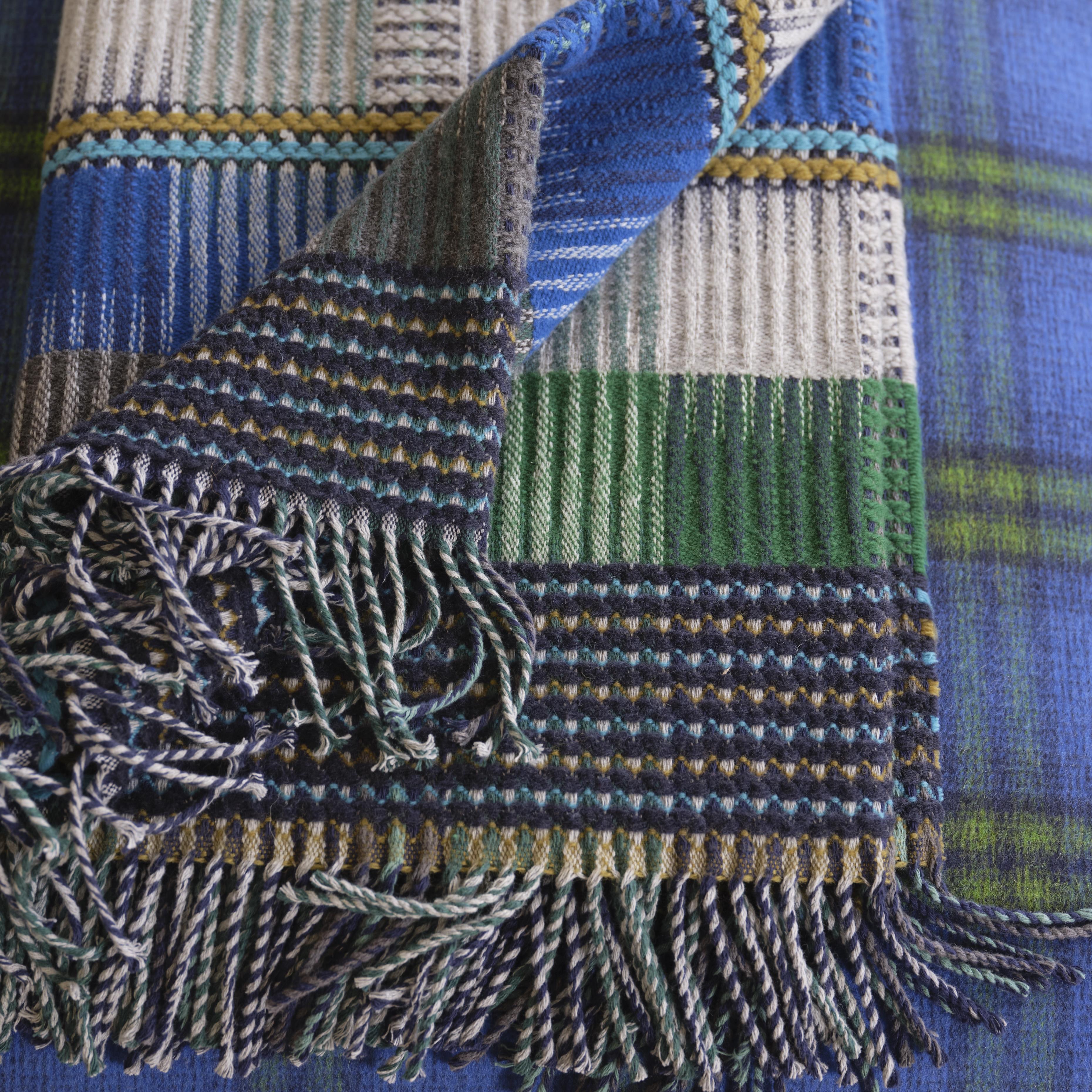 This dramatic large scale floral rug design depicts exuberant flowers with graphic leaves. Set in a mirrored formation, this decorative rug can be used in contemporary and traditional interior settings. Hand tufted in pure wool and viscose in rich tones of cobalt, emerald and moss with a striped edge detailing.