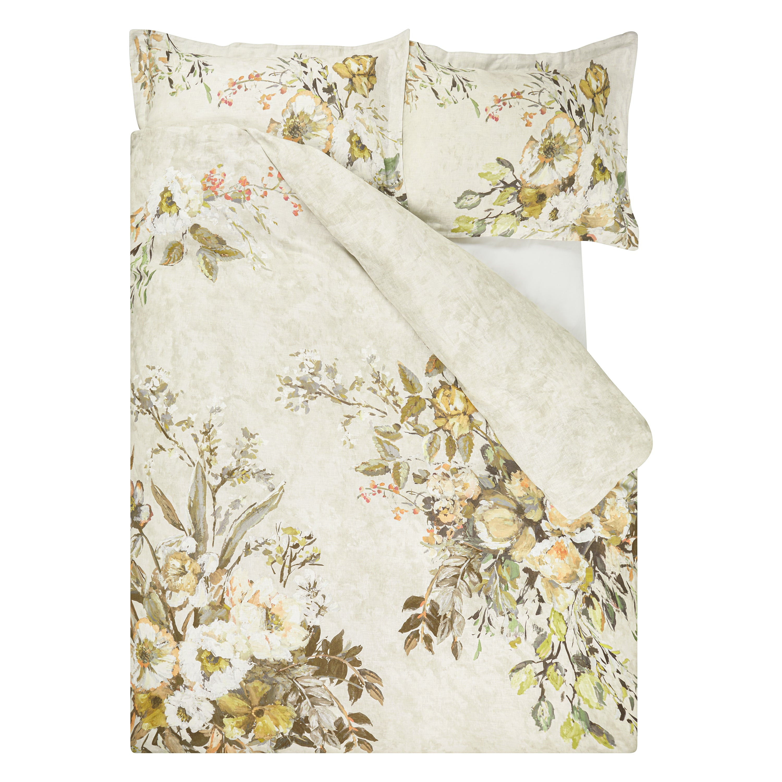 A stunning floral trellis decorative pillow with bold block printed style flowers, paired with the small scale St John Street Trellis in limestone. Finished with a brush trim.